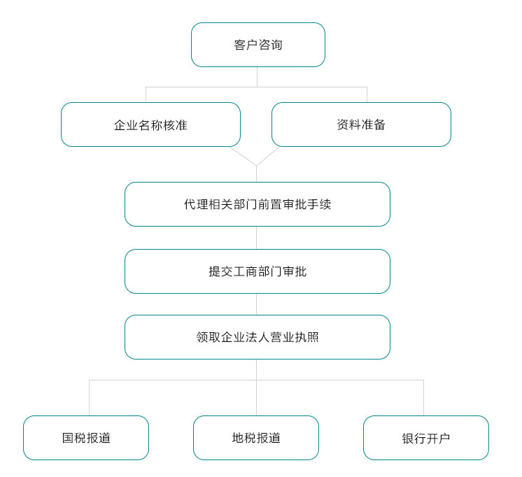 ①公司名稱核準 ②起草公司章程 ③提交注冊申請 ④領(lǐng)取營業(yè)執(zhí)照